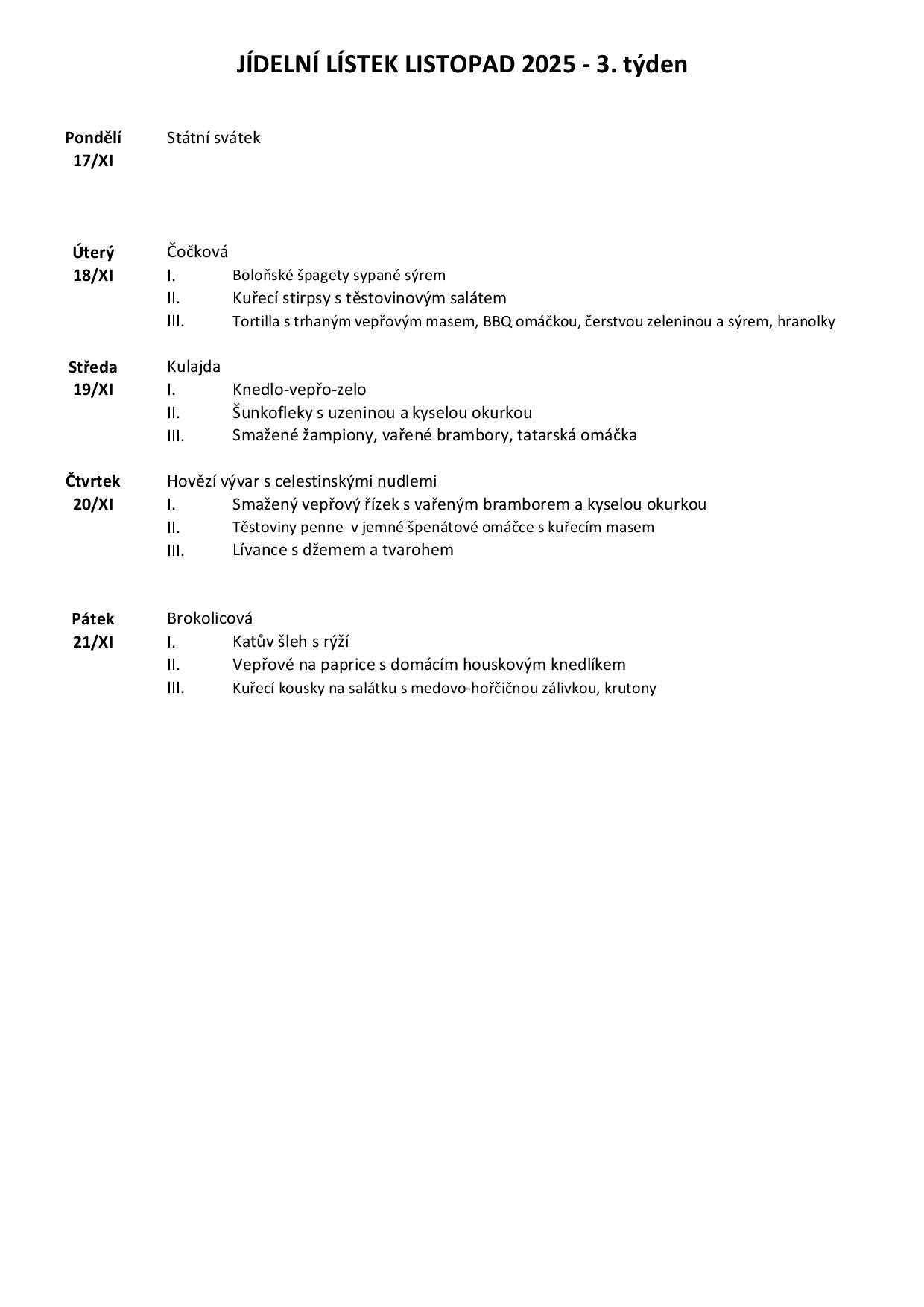 V této sekci naleznete polední meníčka nabízená přímo v restauraci. Pro základní nabídku rozvozu jídla do Pelhřimova a Humpolce klikněte zde.